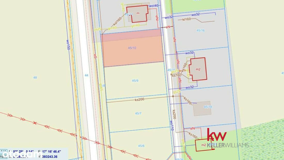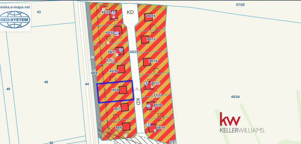 • Działka nr 45/9: powierzchnia 1063 m²